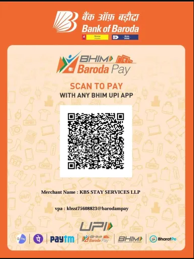 Scan UPI QR code to make advance payments to KBS STAY SERVICES LLP.